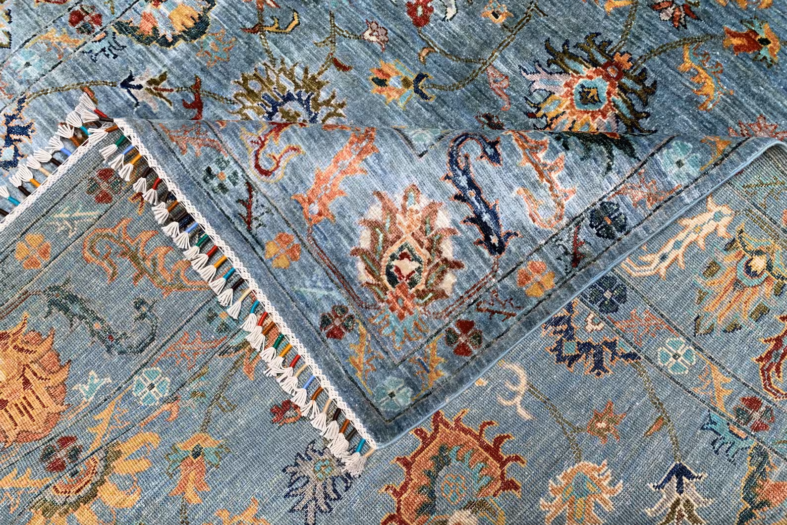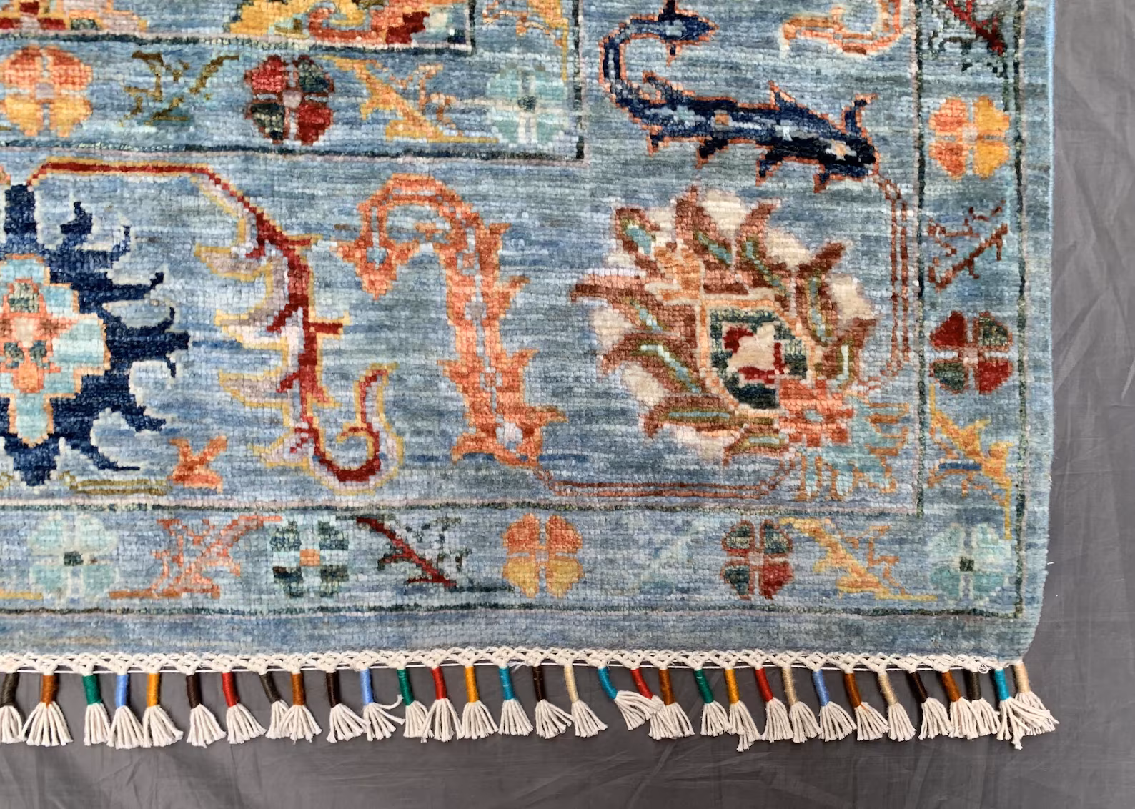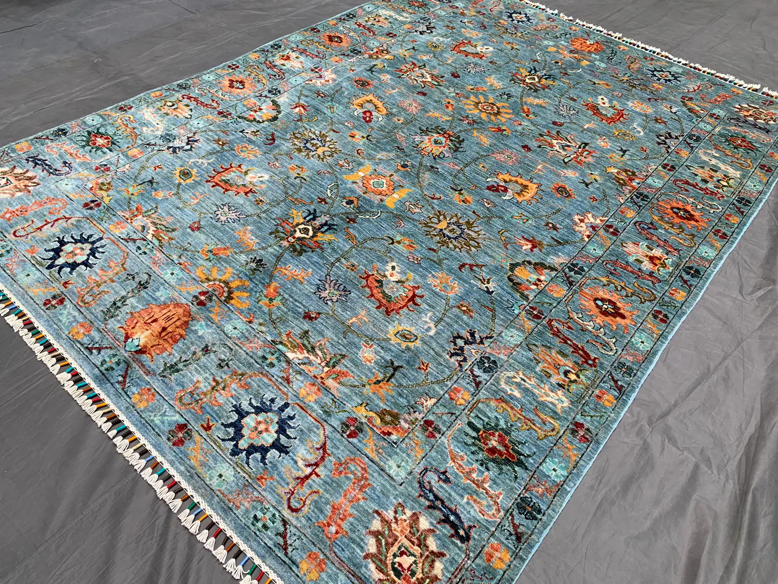 Afghan Sultani Handmade Wool Rug (5.9×8 ft) – Afghan Hand-Knotted Oriental Floral Carpet in Blue & Beige