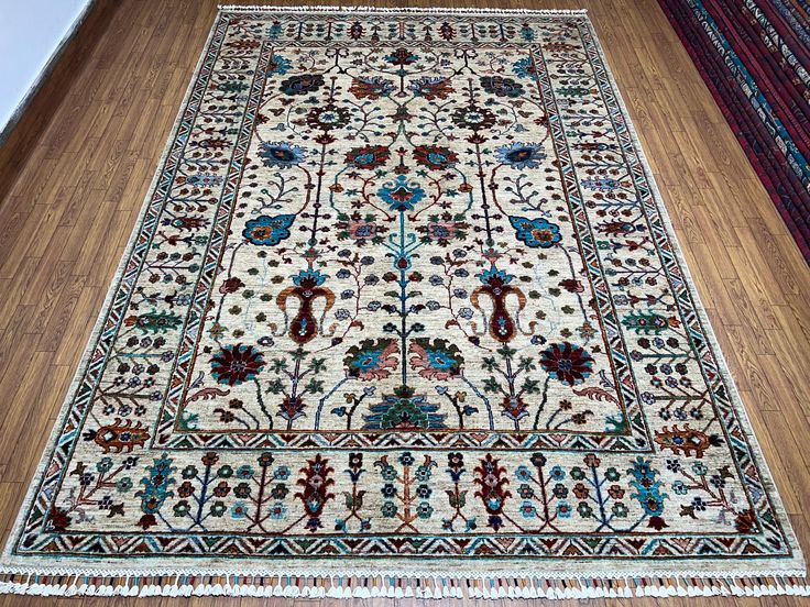 Bring harmony and heritage into your home with our Neutral 6×8 ft Floral Bidjar Area Rug, a stunning example of Afghan craftsmanship. Handwoven by skilled artisans, this Sultani Chobi rug showcases an intricate floral Bidjar pattern in soft beige and natural hues designed to complement both traditional and modern interiors.